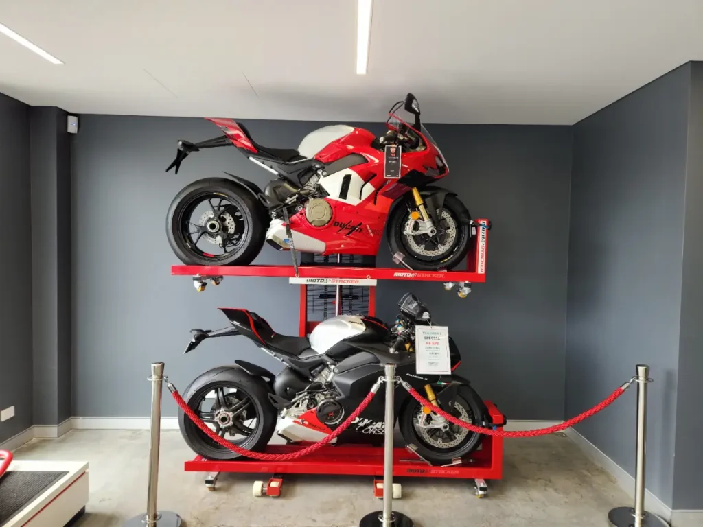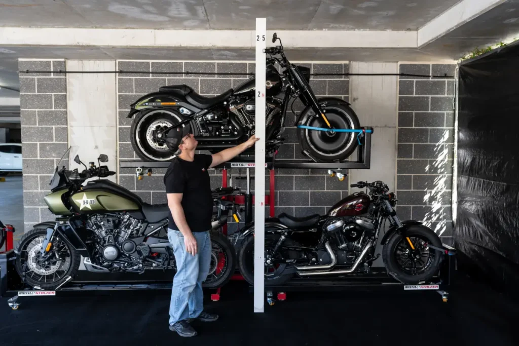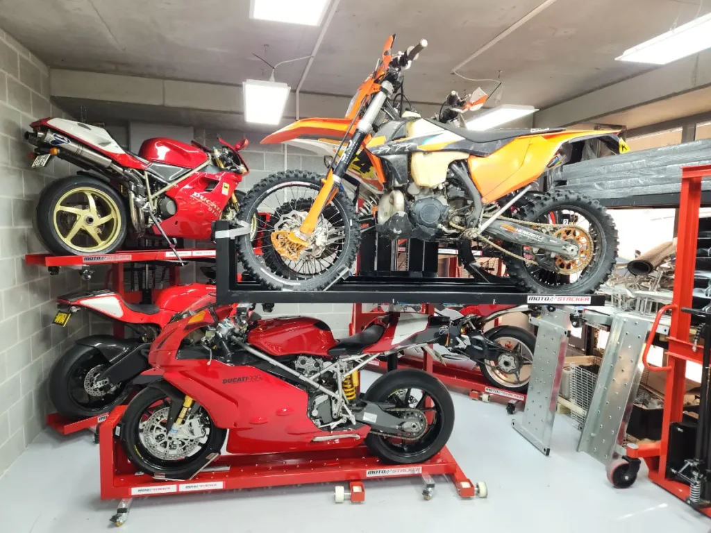 Check out our gallery to see how Moto Stacker products are transforming motorcycle storage for riders and businesses worldwide.