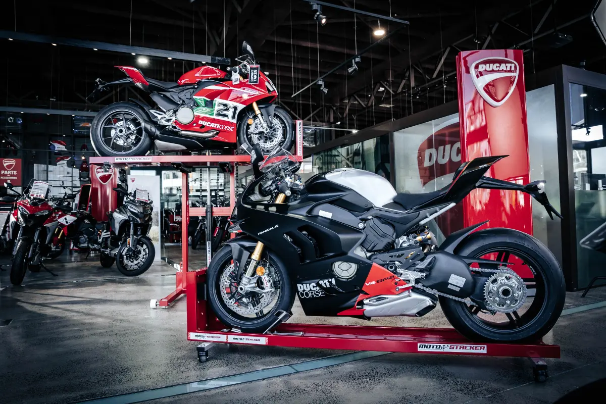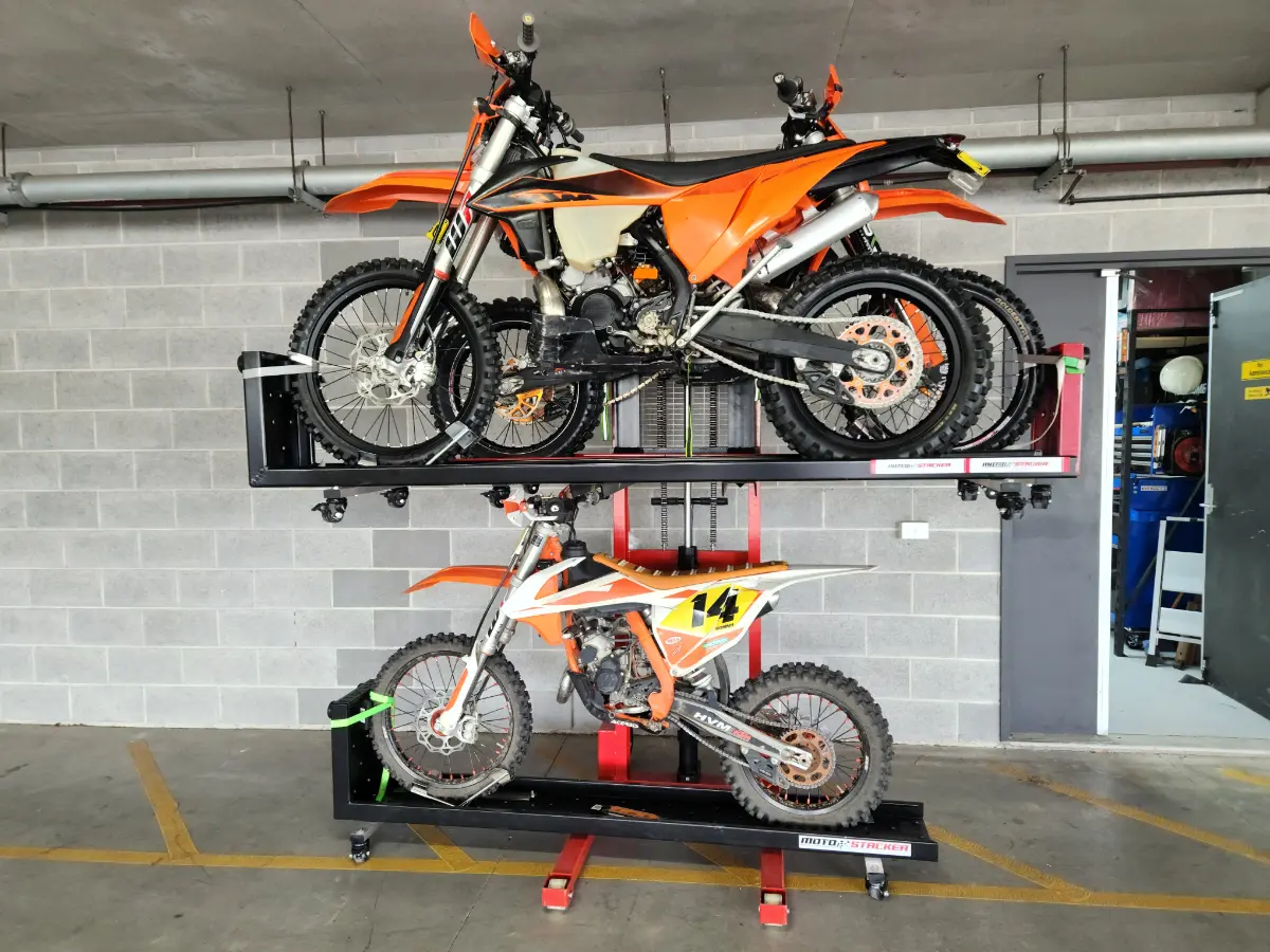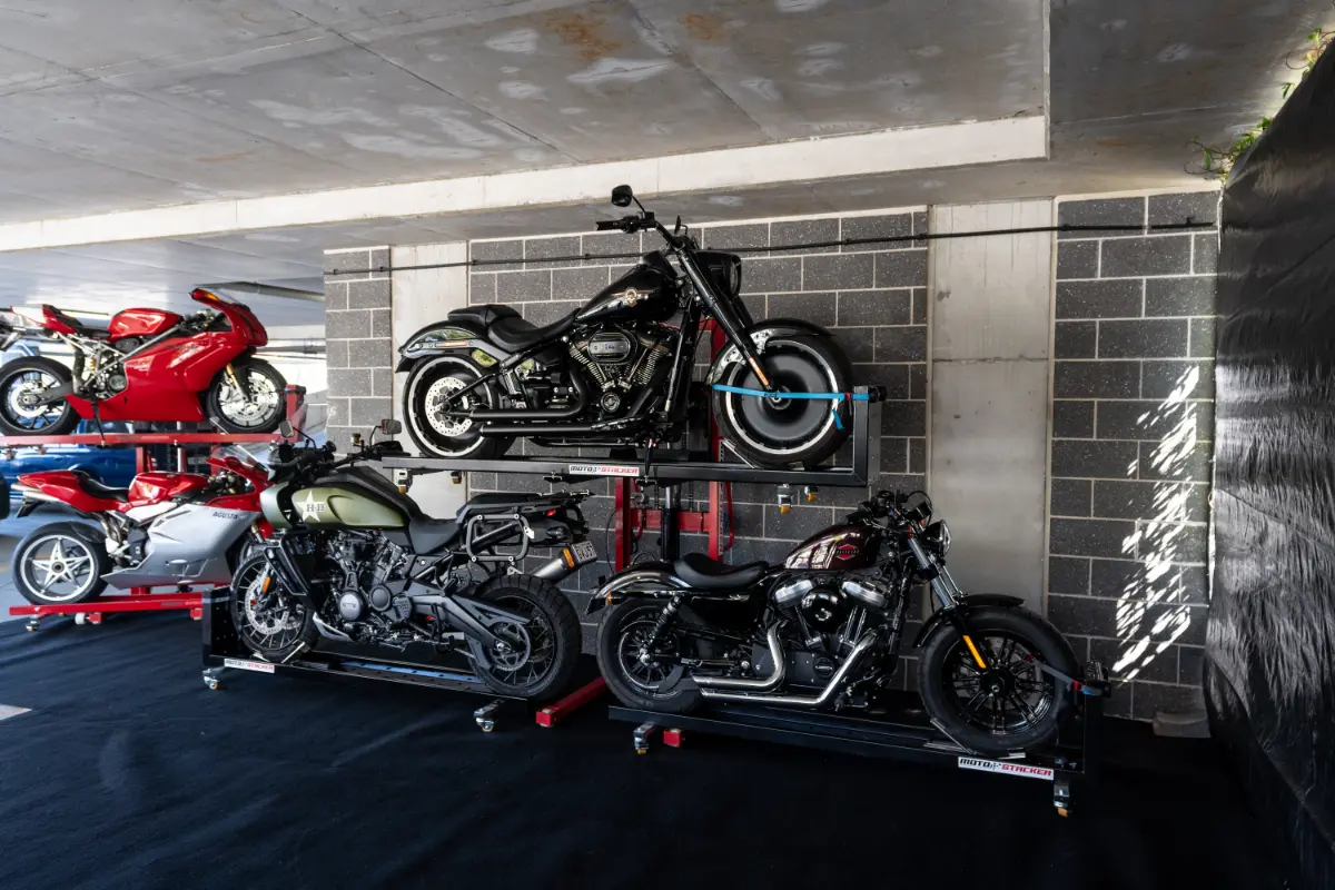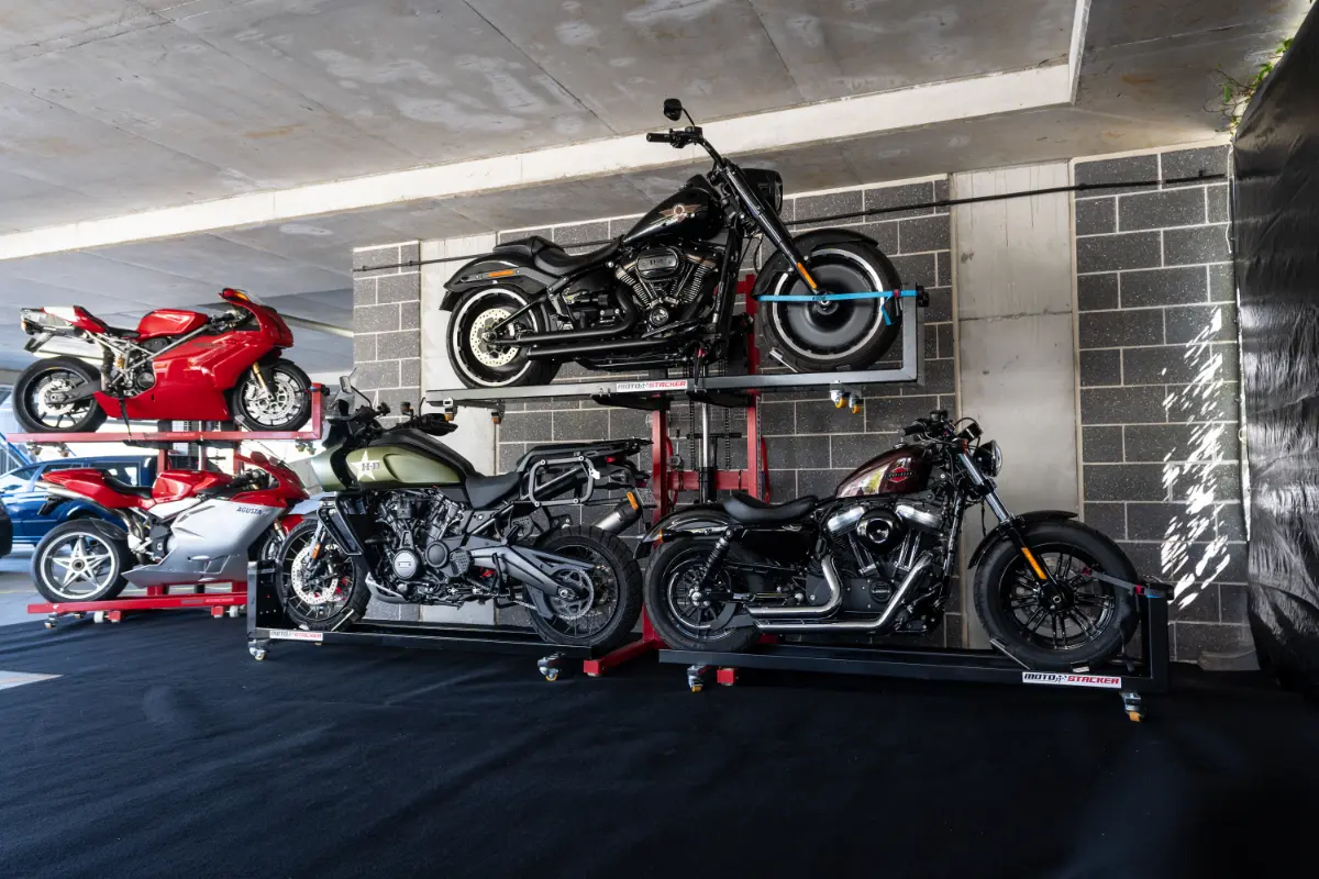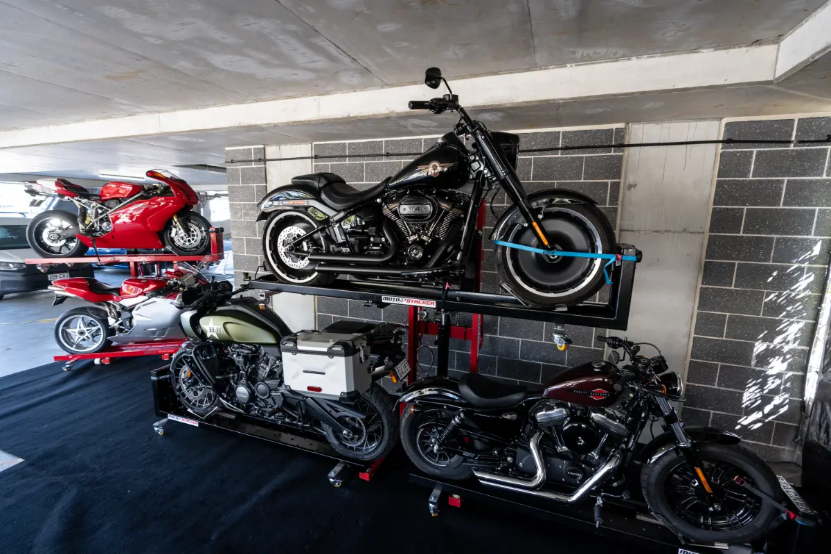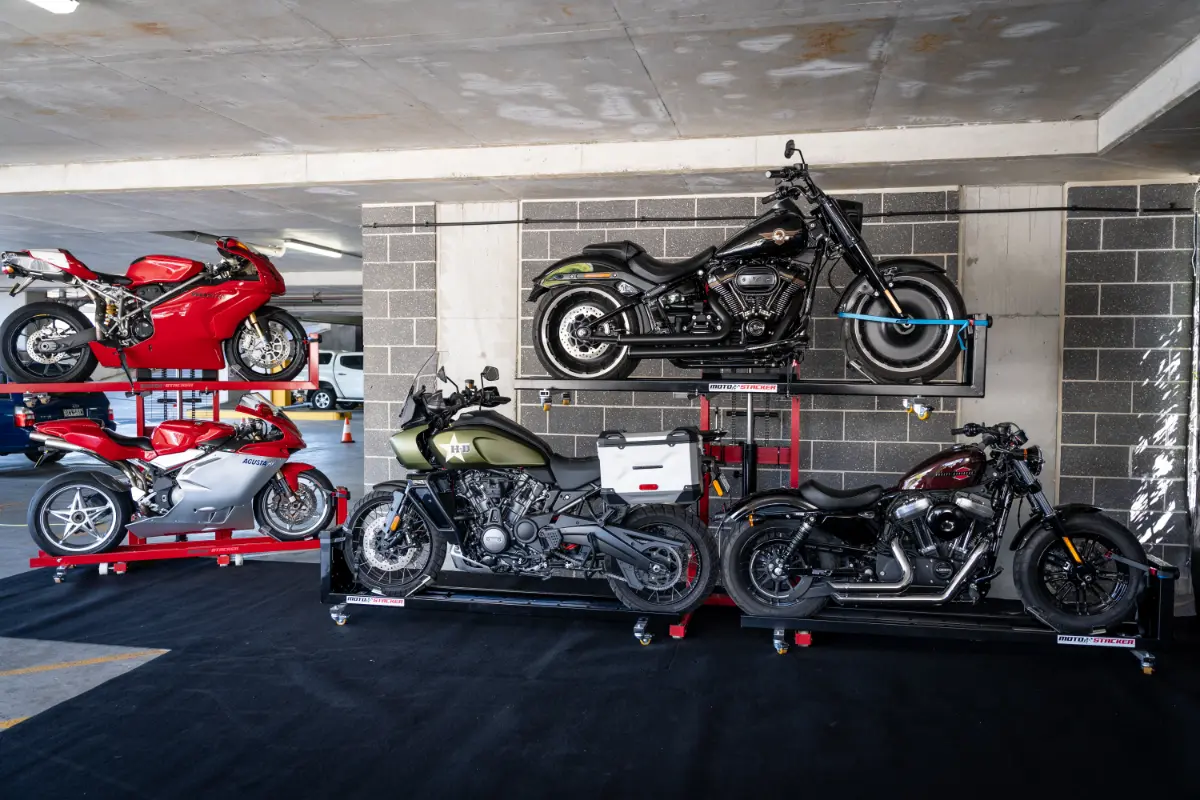 Check out our gallery to see how Moto Stacker products are transforming motorcycle storage for riders and businesses worldwide.