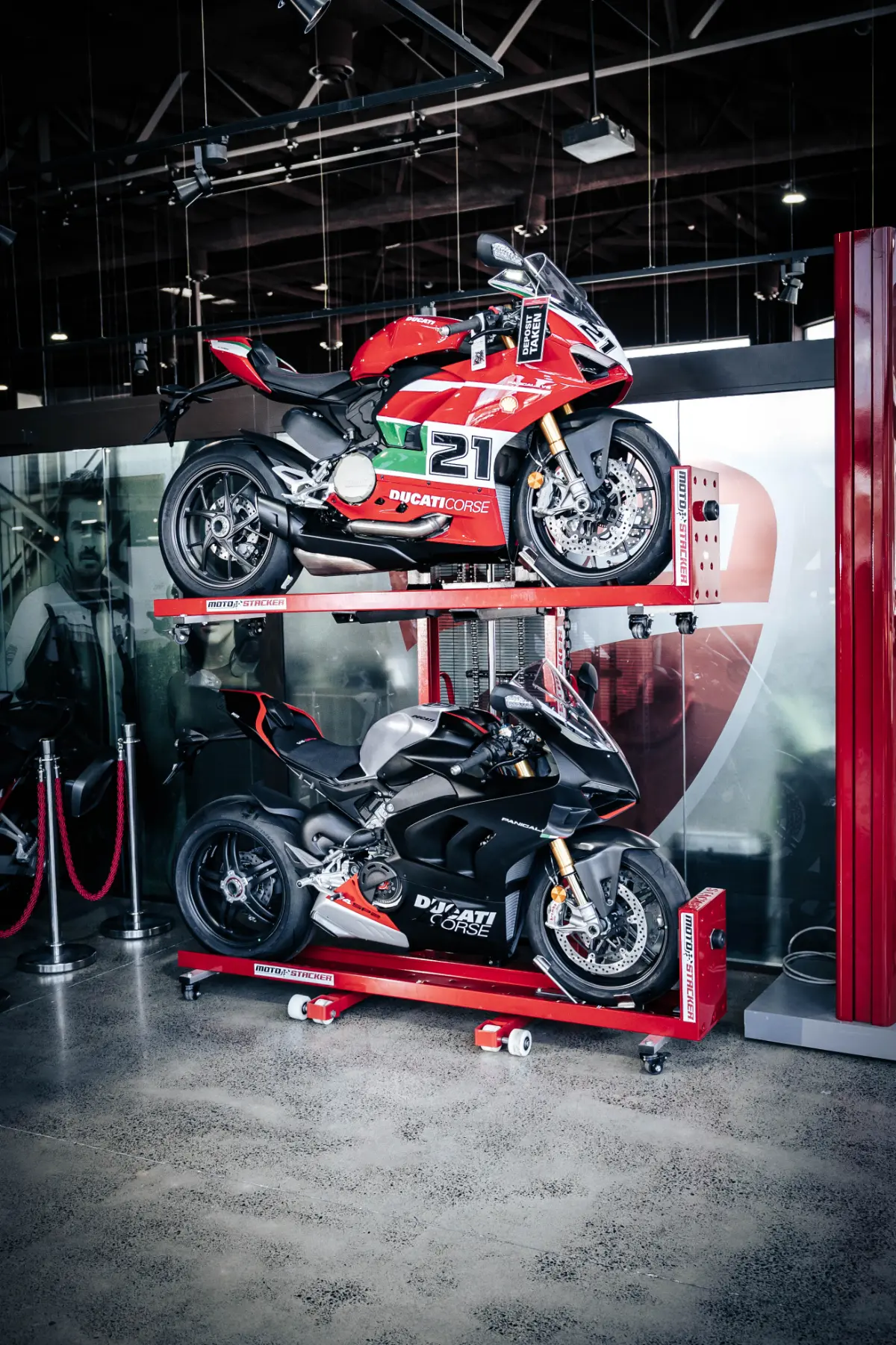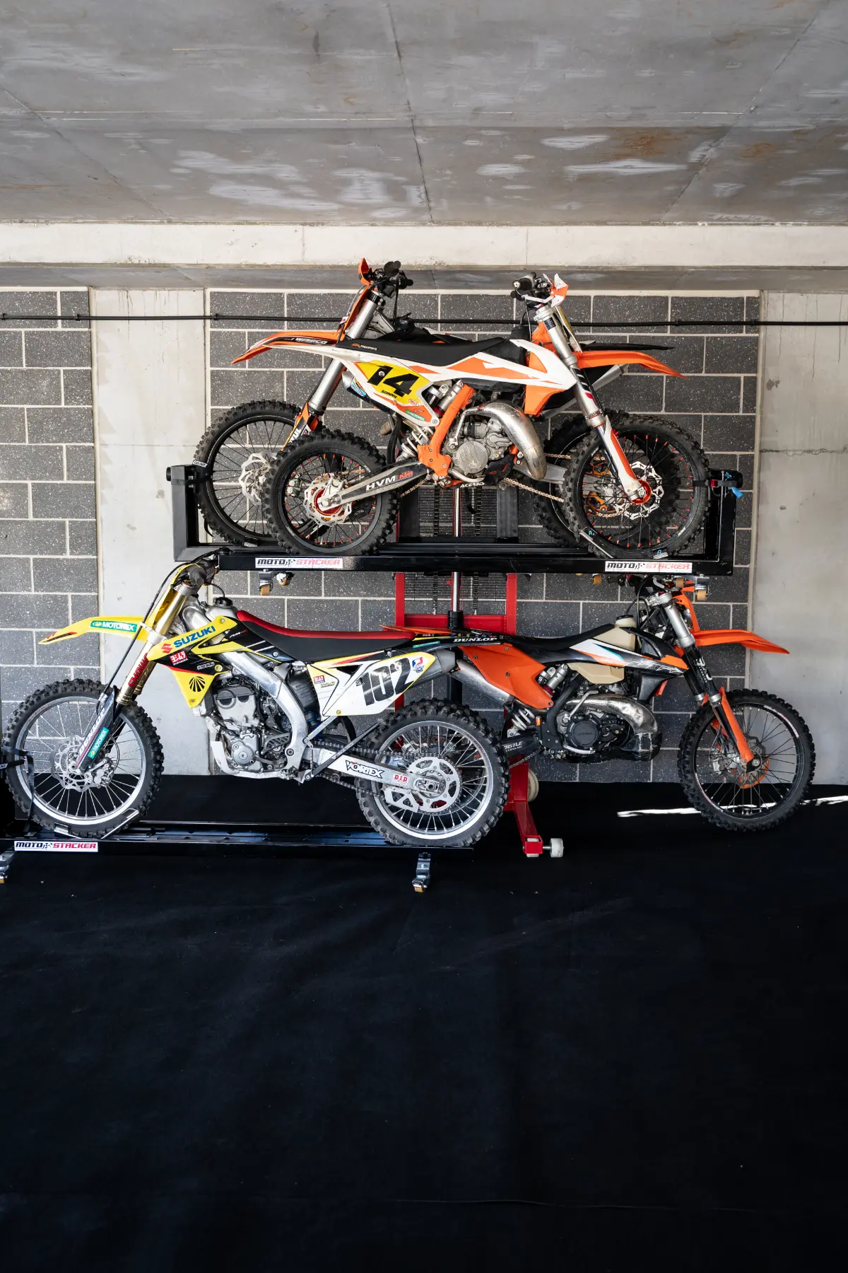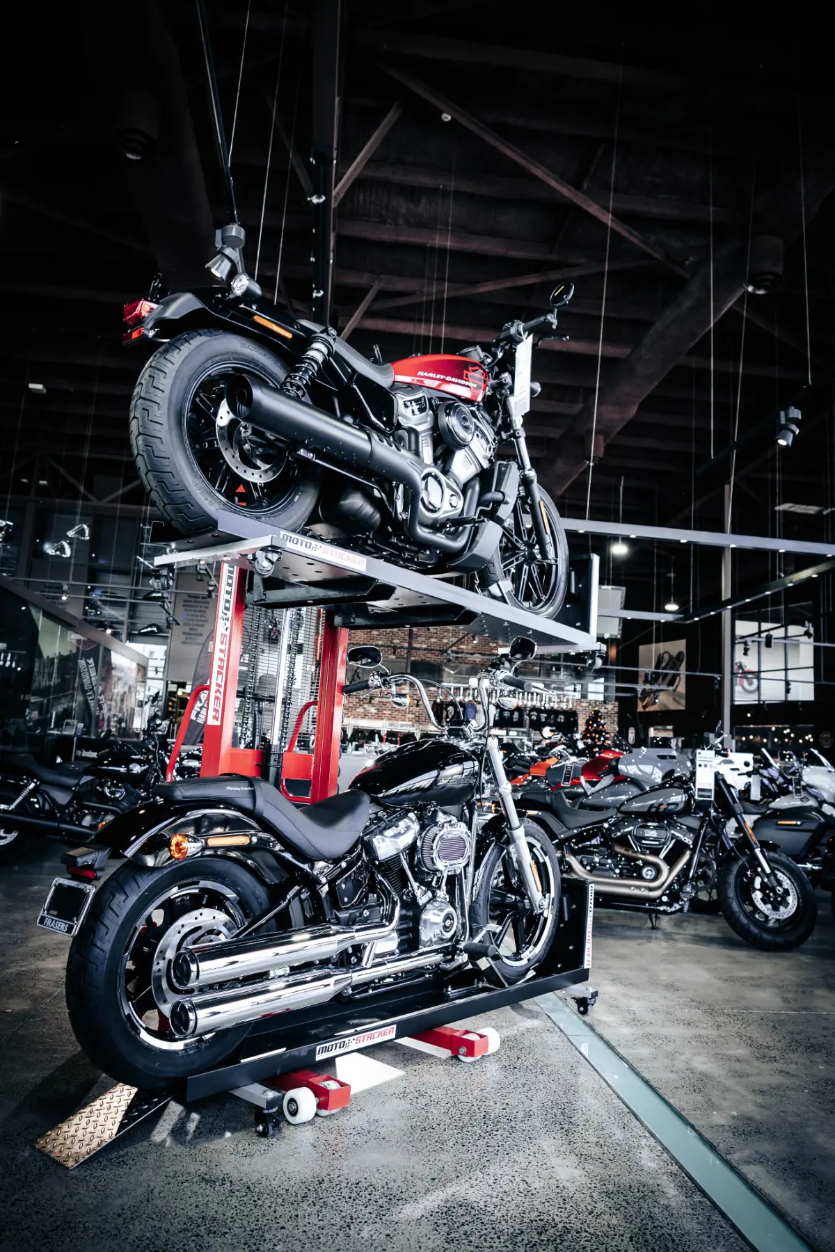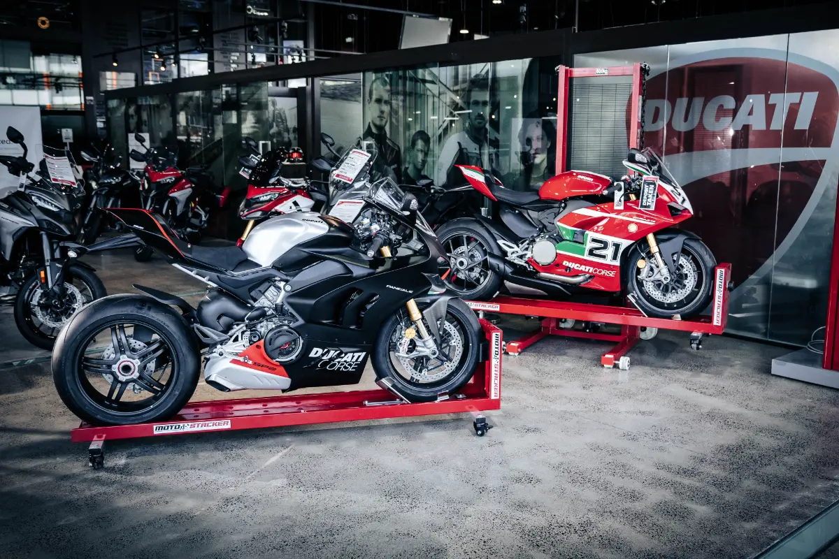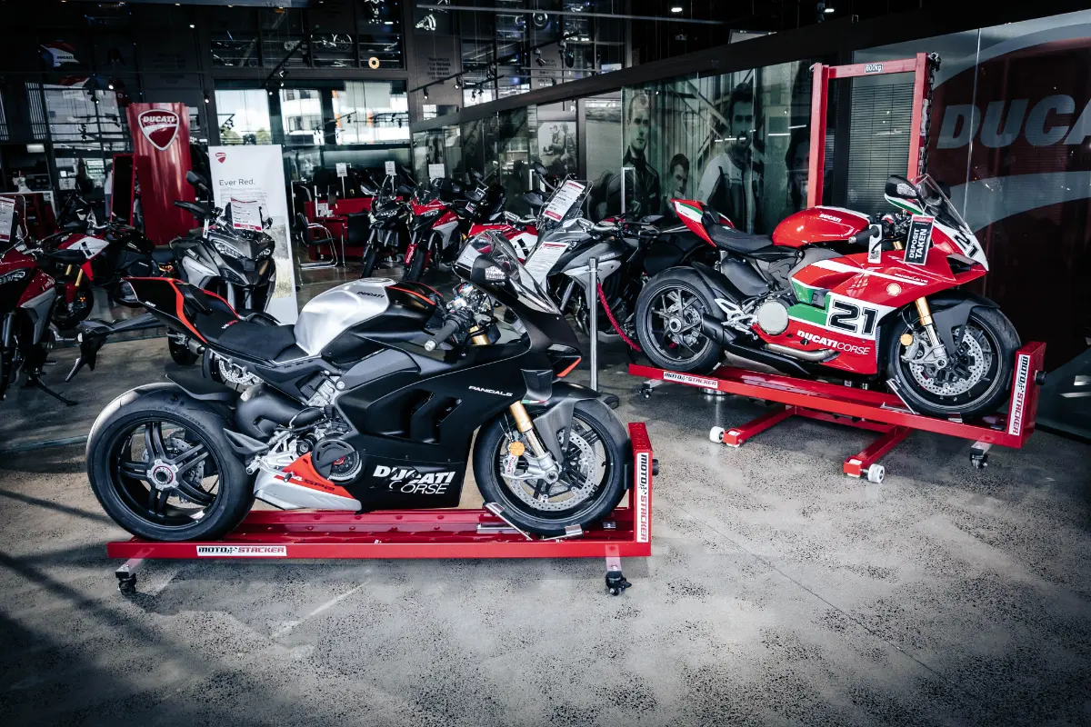 Check out our gallery to see how Moto Stacker products are transforming motorcycle storage for riders and businesses worldwide.